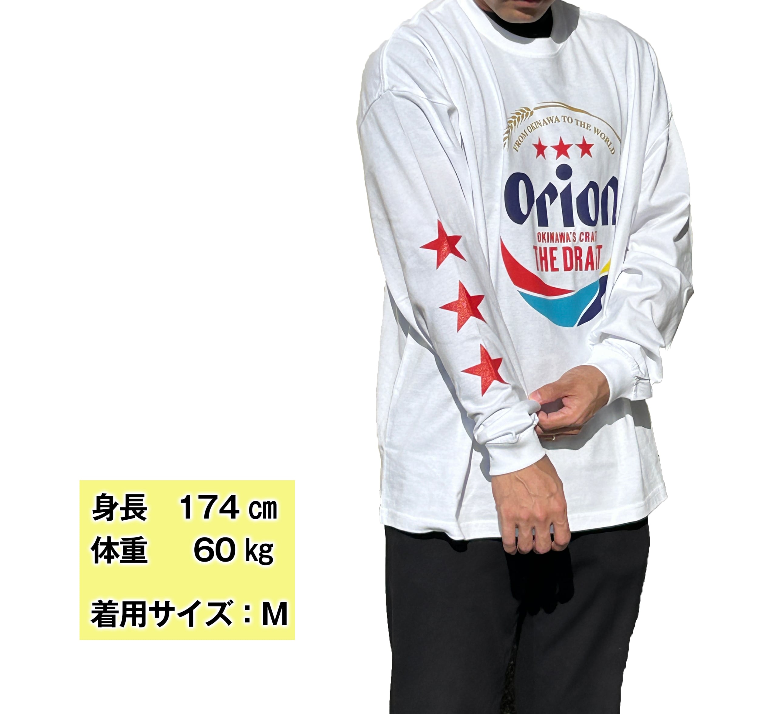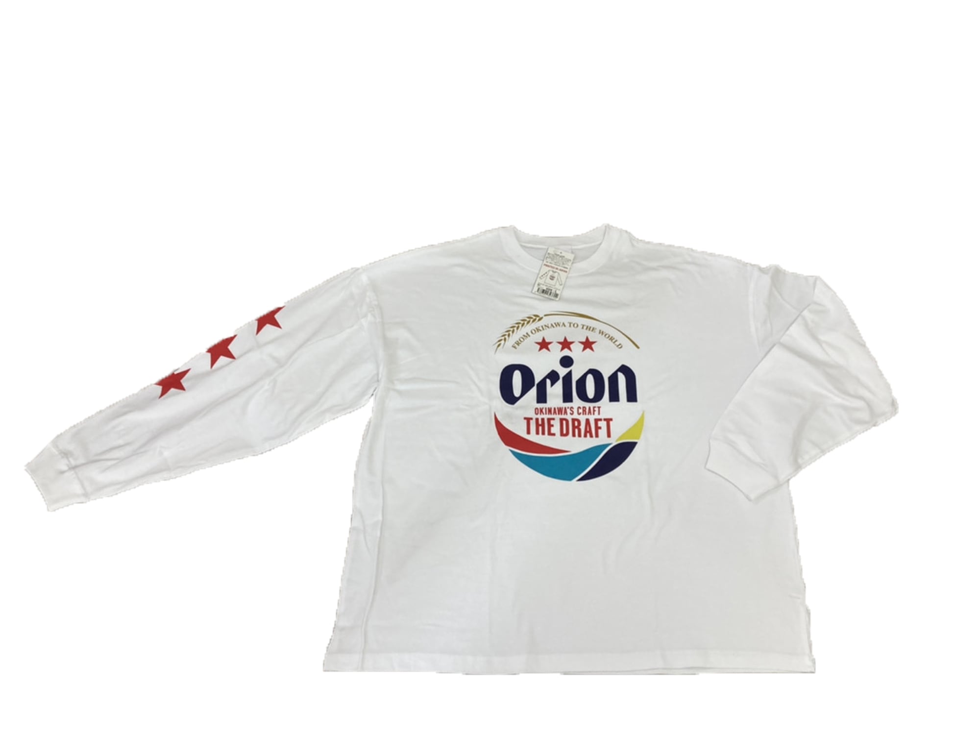 【正規品】オリオンビール ビッグシルエット ロングスリーブTシャツ ホワイト ドラフト缶 長袖 シンプル クルーネック ( 三ツ星 ロングTシャツ ロングスリーブ )