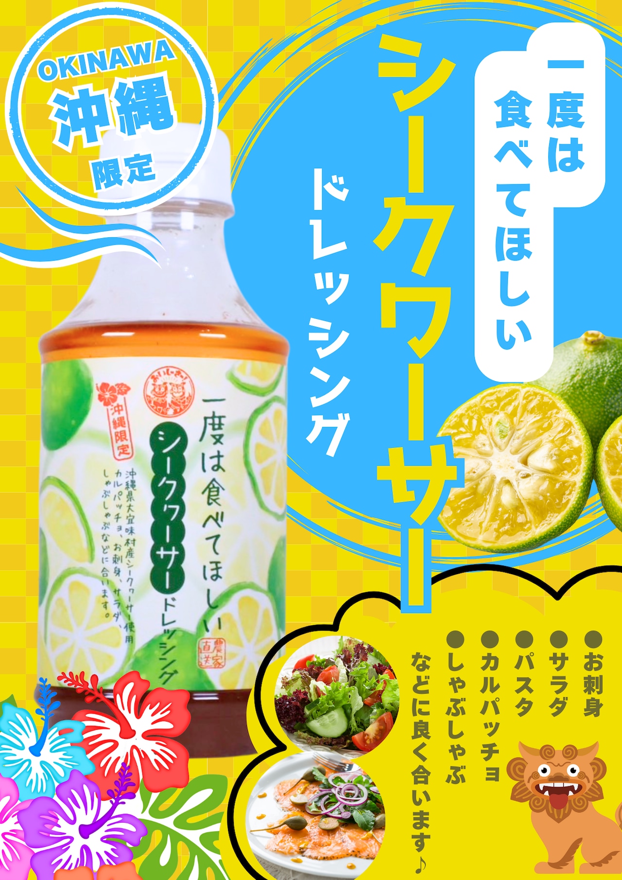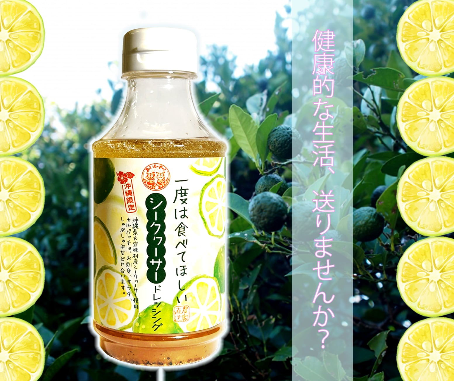 爽やかなシークヮーサーの風味が楽しめるドレッシングで、サラダやお刺身、焼き物など多彩な料理にぴったりです。沖縄の自然が育んだ味わいをぜひご賞味ください。