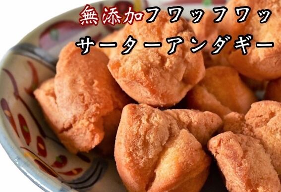 防腐剤なし!無添加‼︎「余計なものは、入れない。」がモットー。沖縄県南城市で親子二代でこだわりぬいて作るやさしい甘さの無添加さーたーあんだぎーは、小さなお子様から大人まで楽しめる沖縄の伝統菓子です。軽やかな食感と素朴な甘さがパクパク食べ進めてしまう美味しさ。ストレートに楽しむだけでなく、紅茶やコーヒー、緑茶のお供としても最適です。