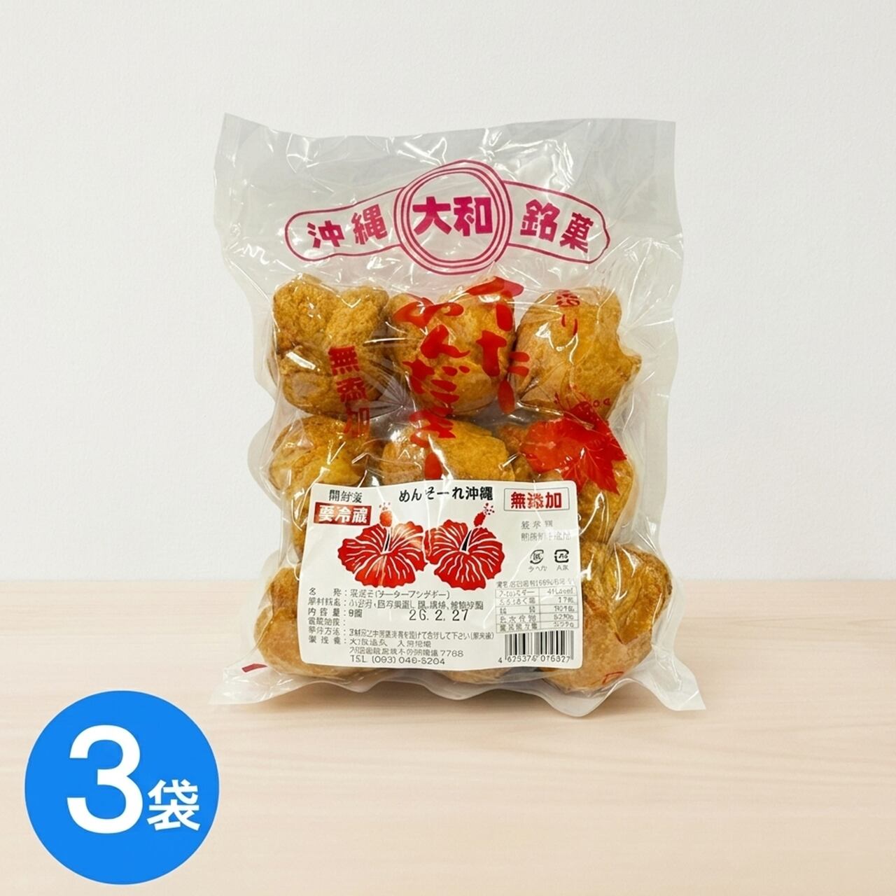 無添加さーたーあんだぎー 3袋(1袋9個入) 旅の記憶をひとくちに。サクッ、ふわっ、幸せ。 沖縄銘菓 大和食品 【看板出さない名店】(※ご注文日から3~4営業日で発送いたします)