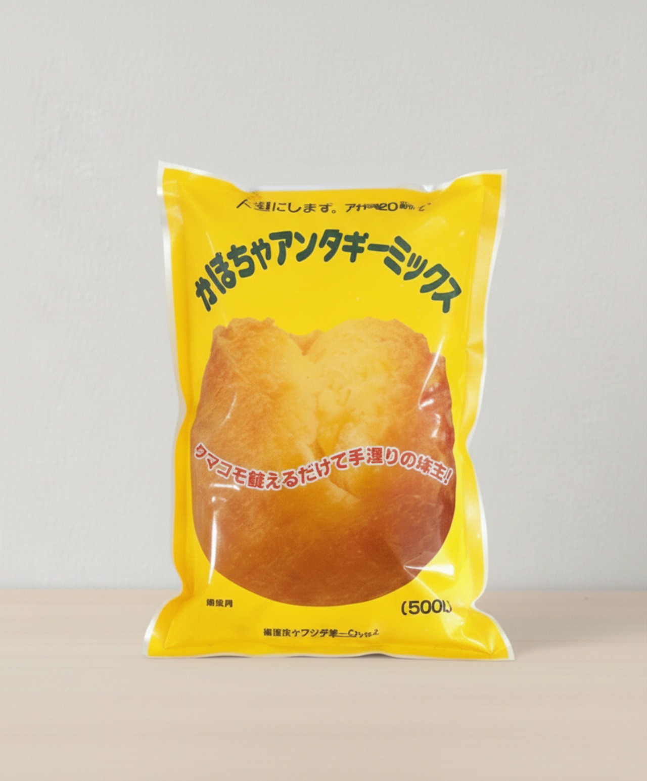 小麦粉(国内製造)、砂糖、かぼちゃ粉末、でん粉、粉末油脂(植物油脂、コーンシロップ)、食塩/ベーキングパウダー、カゼインNa(乳由来)、乳化剤(大豆由来)、酸化防止剤