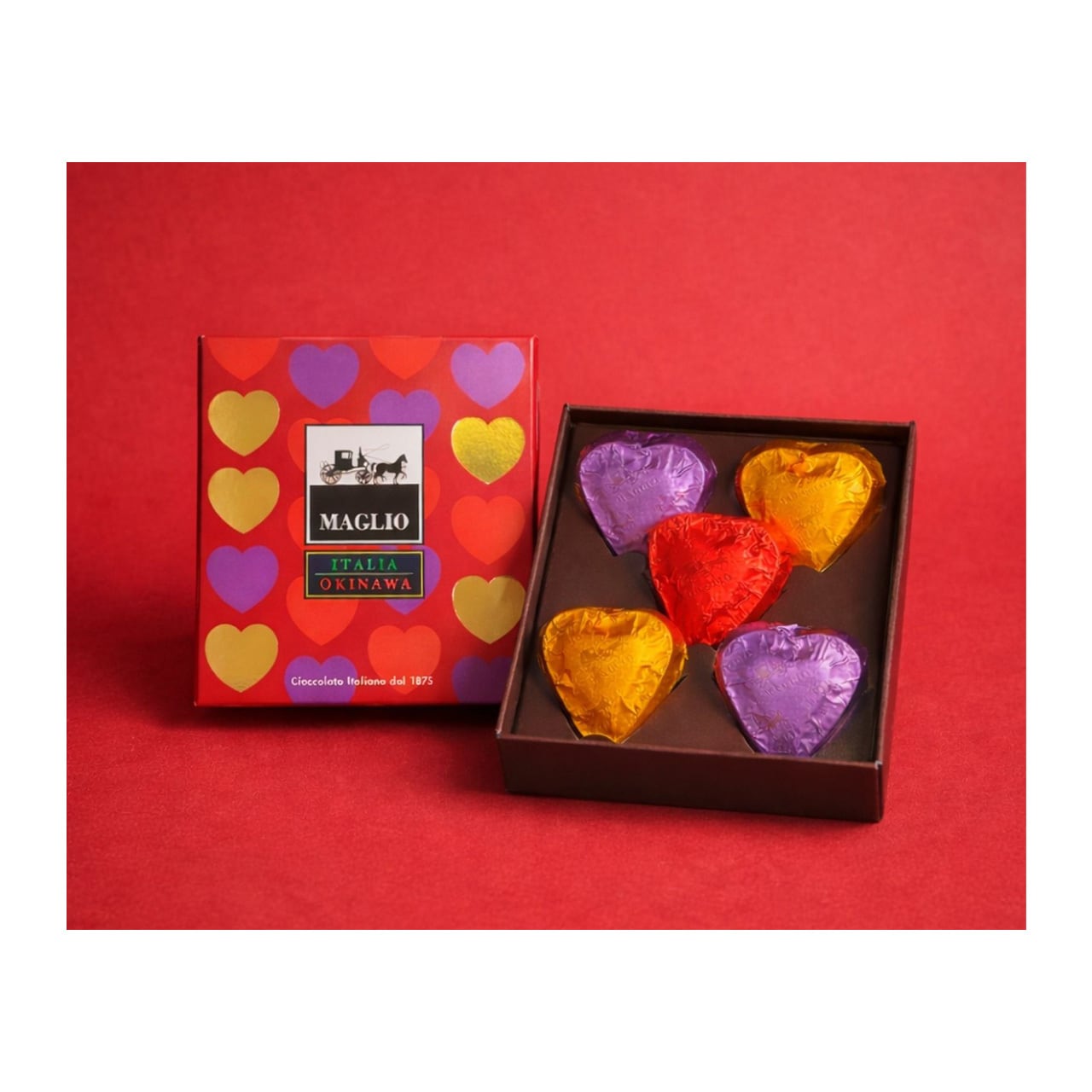 高級 イタリア マーリオ チョコレート『 ハート型ギフト 』 1箱 (1箱5個入 ミルク味2個・ビター味2個・ジャンドゥーヤビター味1個 ) 沖縄とイタリアのコラボチョコ ※冬季限定※ (※ご注文日から1~3営業日で発送いたします)