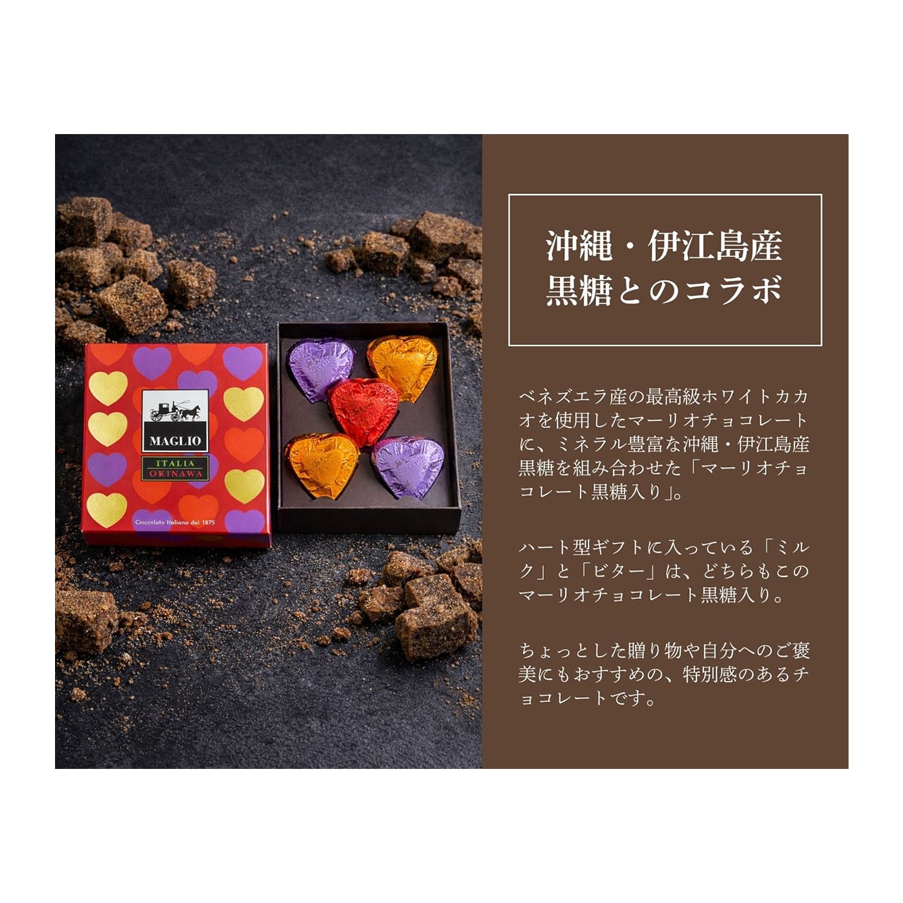 ◆沖縄とイタリアのコラボレーションが生んだ、高級イタリアマーリオ チョコレート『ハート型ギフト』が登場!大切な人へのプレゼントや、自分へのご褒美にぴったりの一品です。クリスマスやバレンタインデー・ホワイトデーなど、さまざまなシーンで喜ばれること間違いなし!贈り物としてもぜひご利用ください。