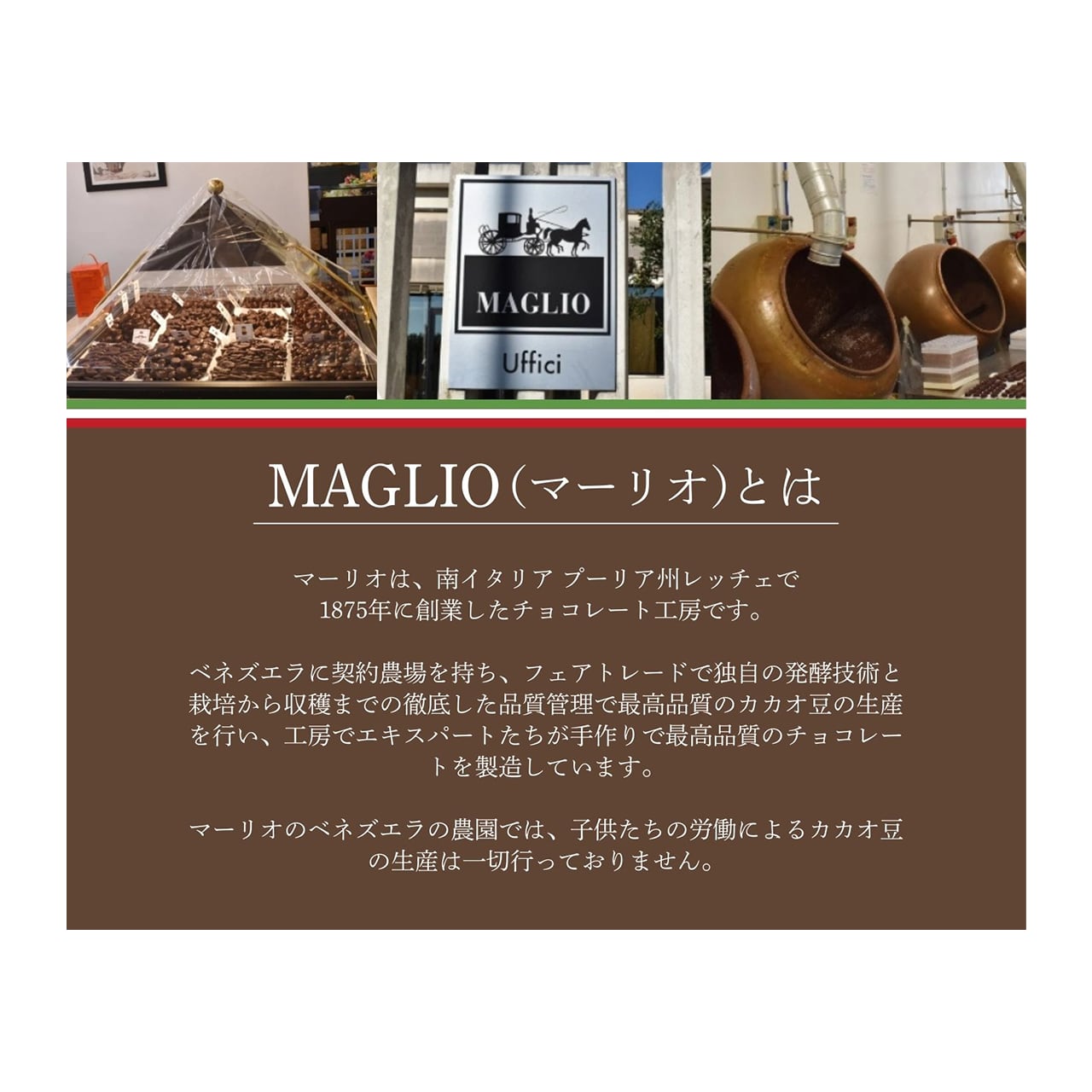 原材料名:【ビター】カカオペースト、砂糖、黒糖/香料【ミルク】カカオバター、全粉乳(乳成分を含む)、黒糖、砂糖、カカオペースト【ジャンドゥーヤ】砂糖、カカオペースト、ヘーゼルナッツペースト、カカオバター、シア植物油、脱脂粉乳、無水バター、食塩/乳化剤、香料