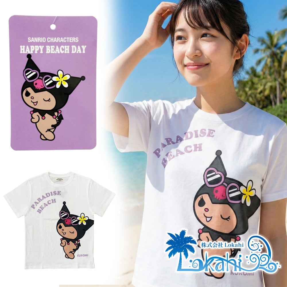 決算大特価! 【正規品】サンリオ 日本限定 『 日焼け クロミ Kuromi Tシャツ ホワイト 白 S M L XL 』 (※注文日より1~3営業日で発送いたします)
