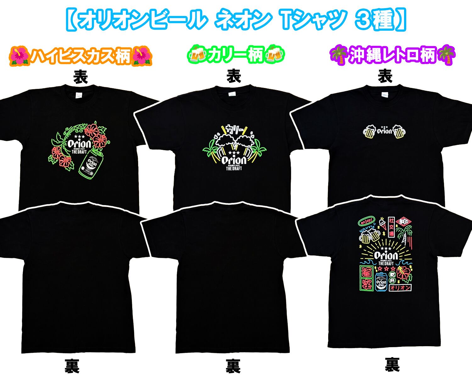 大人気オリオンビールTシャツのネオン版3種類【沖縄レトロ柄/カリー柄/ハイビスカス柄】からハイビスカス柄の紹介です!