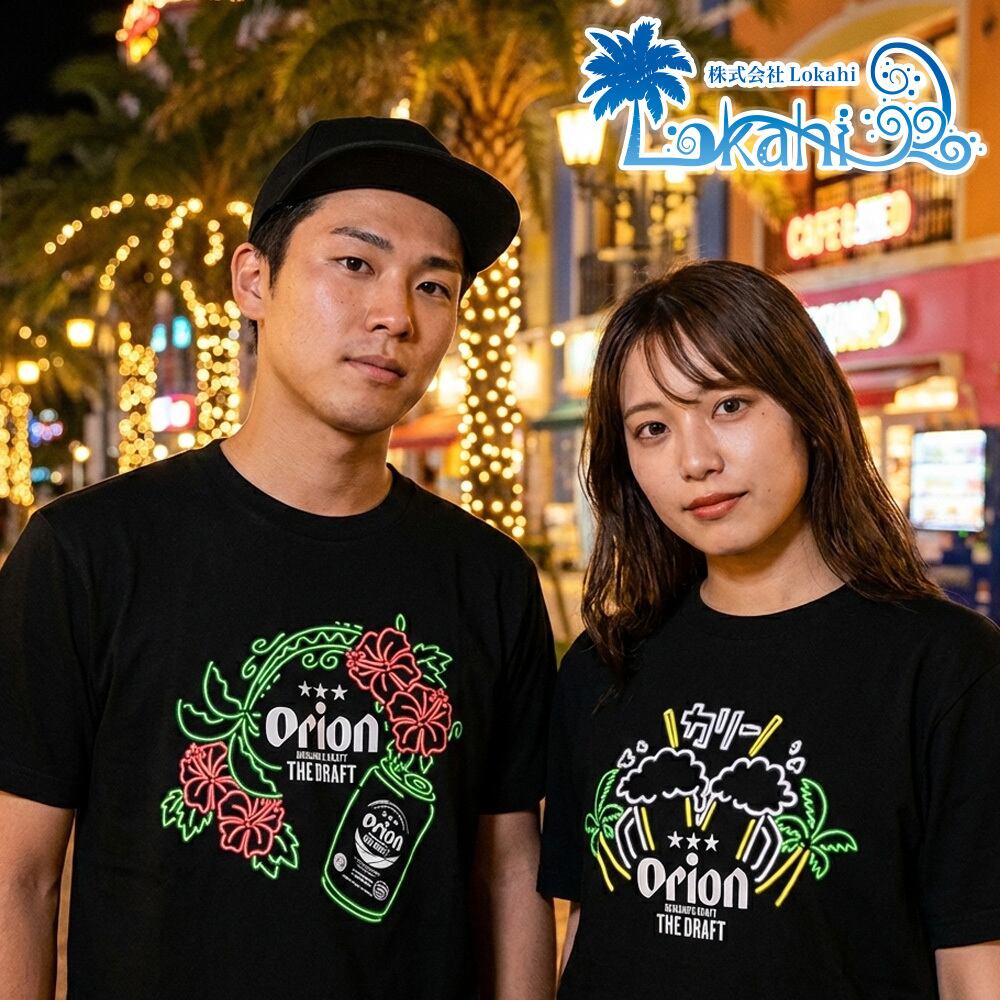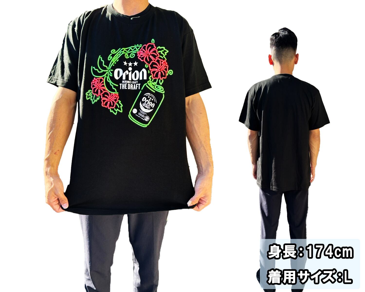 【正規品】沖縄 オリオンビール Tシャツ ネオン 半袖 (ハイビスカス柄)S~XL ユニセックス 綿100% オリジナル商品 ※ご注文日から1~3営業日で発送いたします