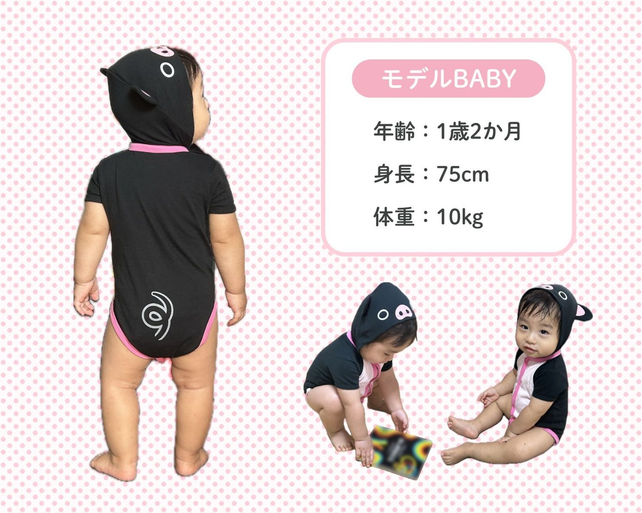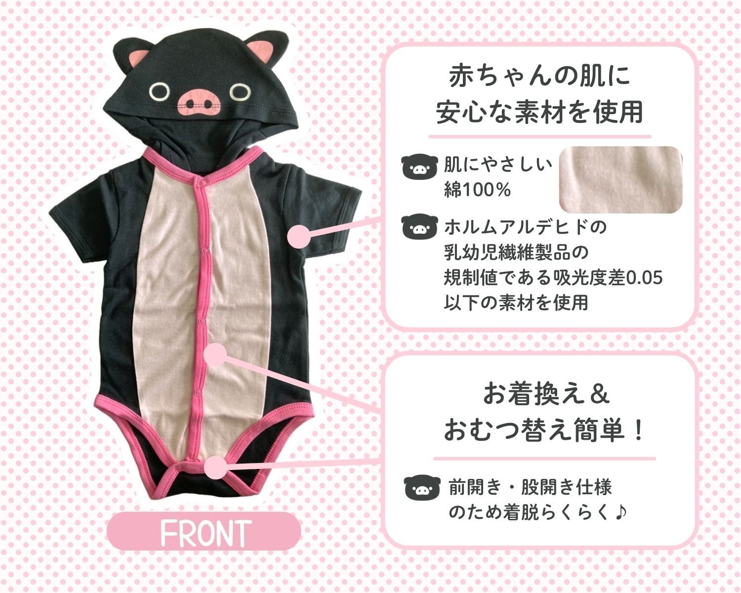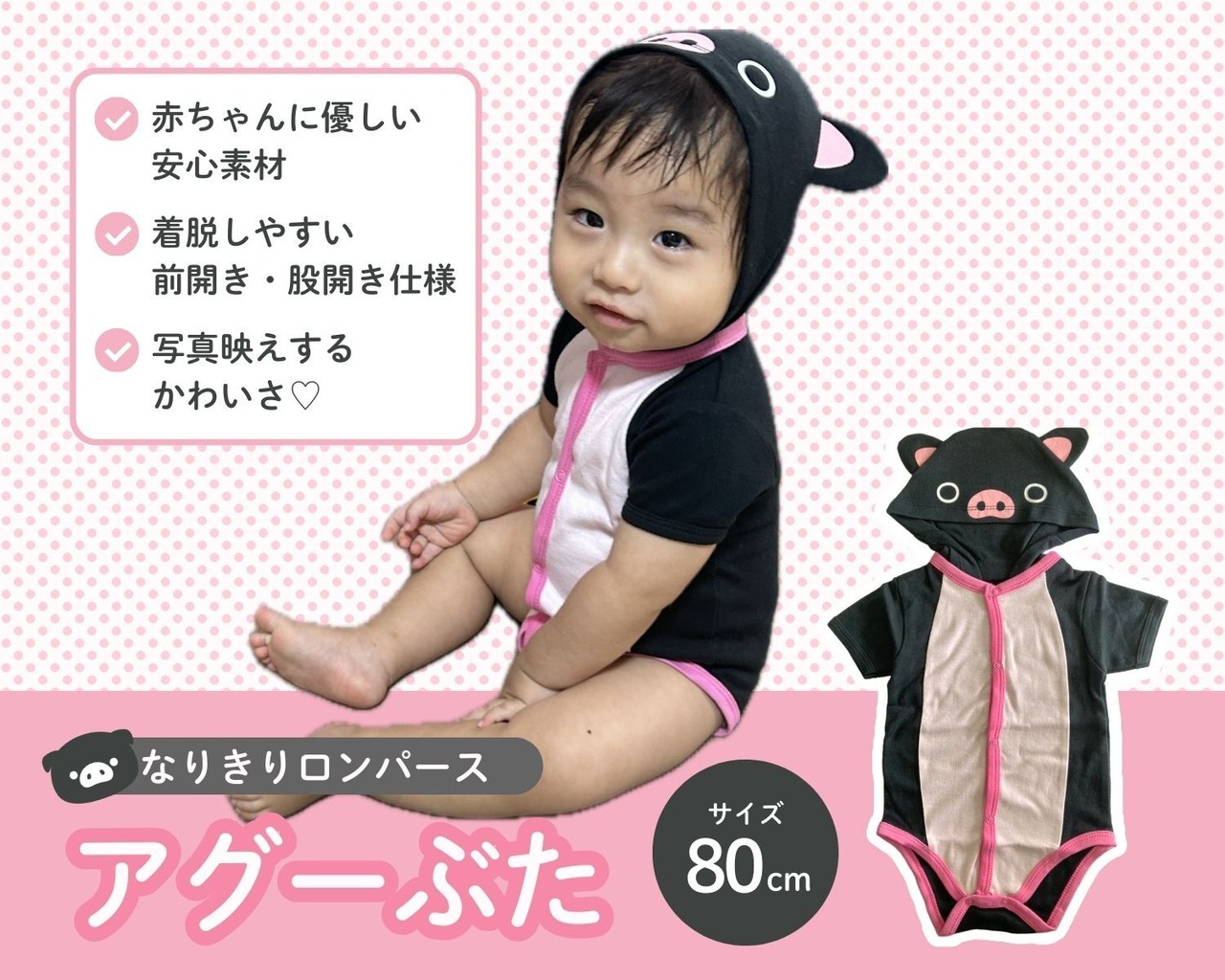 沖縄の特産品、アグー豚をモチーフにした可愛らしいなりきりロンパースが登場しました!このロンパースは、沖縄の伝統文化を感じさせながらもぶたチャンになりきれる可愛いデザインが特徴です。