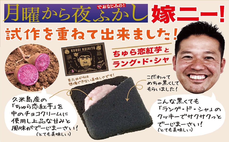 ◆毎週月曜深夜放送の大人気番組に何度も出演!人気となった『嫁ニー』こと平良司さん! 嫁ニーが考案したお菓子、ラングドシャがついに発売になりました!