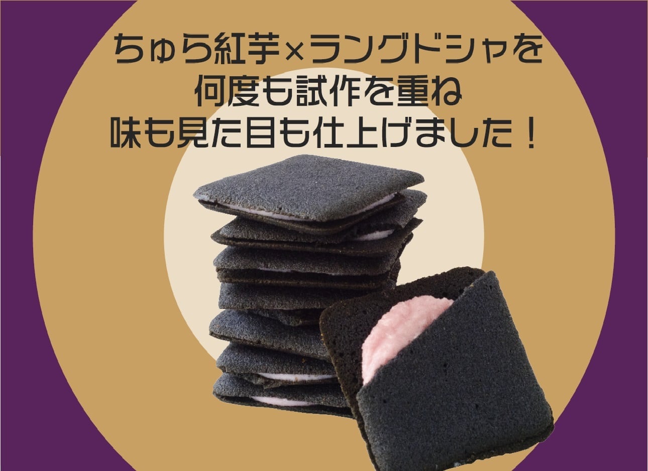 ◆ラングドシャは嫁ニーこだわりの『黒』!そして中のクリームは沖縄を感じさせる紅芋を優しくほっとする味に仕上げサンドしています!