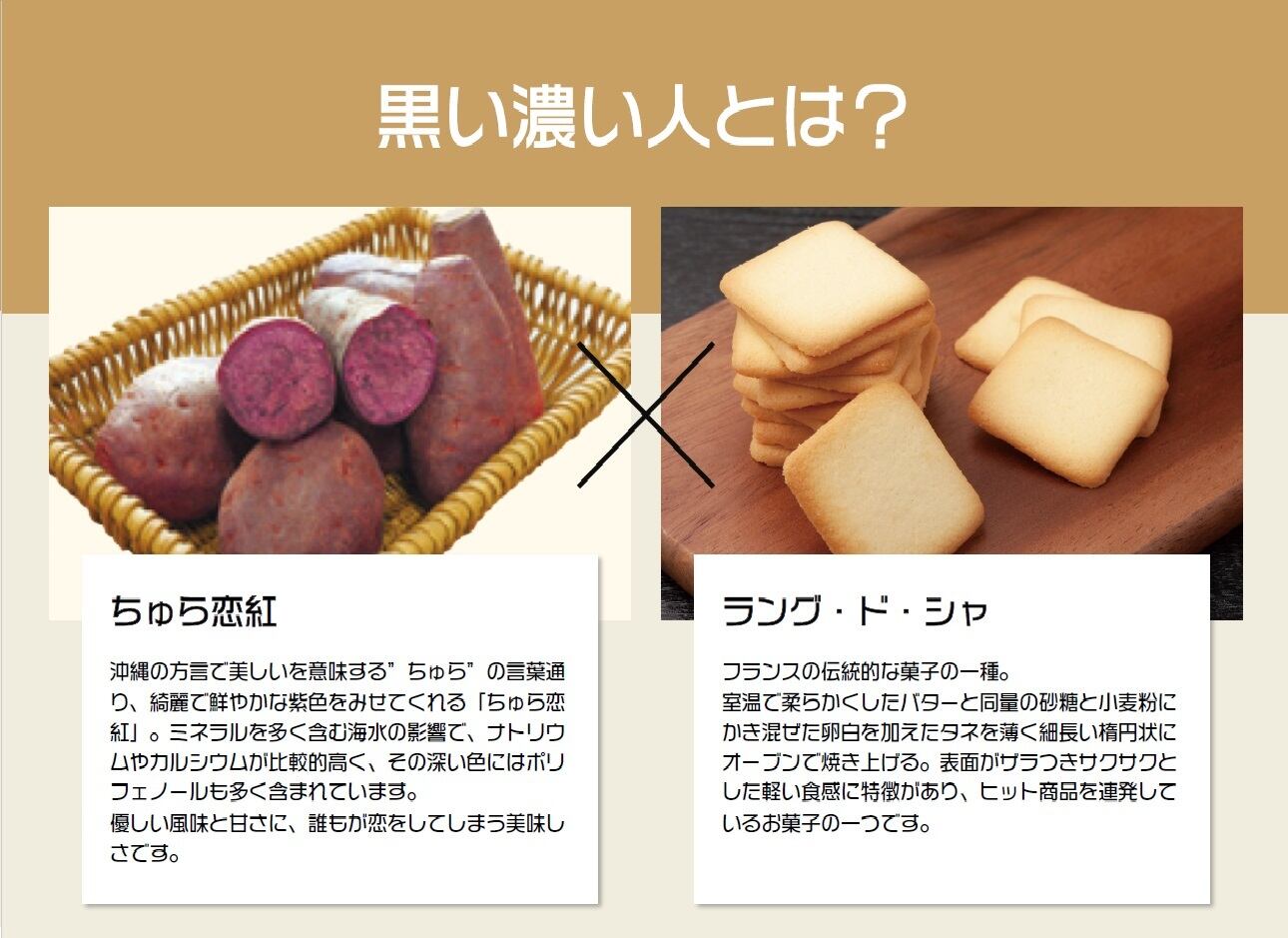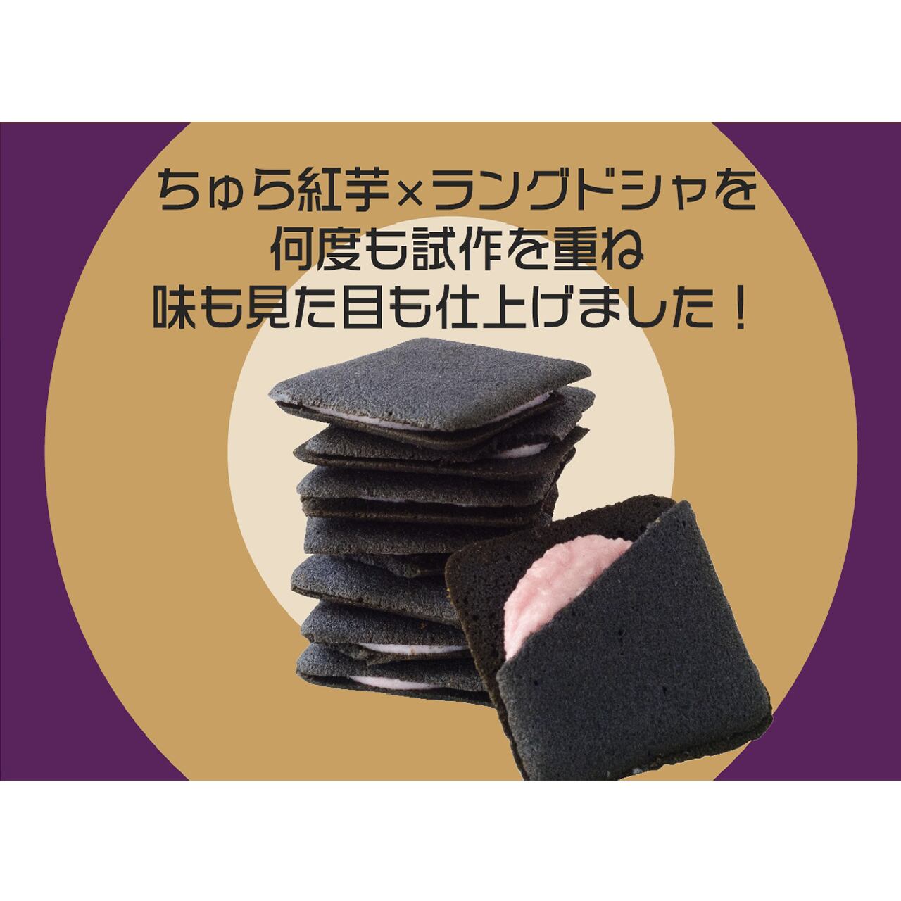 ◆ラングドシャは嫁ニーこだわりの『黒』!そして中のクリームは沖縄を感じさせる紅芋を優しくほっとする味に仕上げサンドしています!